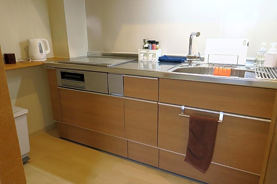 The fully equipped kitchen has a stovetop, a refrigerator, a dishwasher and kitchenware. The spacious quadruple room offers tatami, a coffee machine, as well as a private bathroom boasting a bath and a shower. The unit has 5 futons.