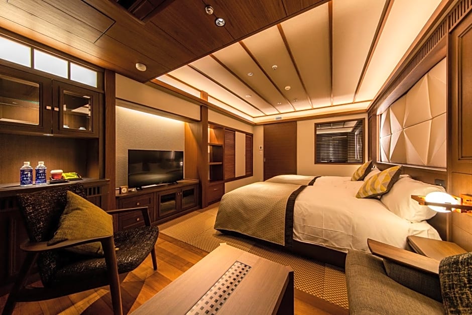 The quadruple room includes a private bathroom, well-fitted with a bath, a shower, a bidet, a hairdryer and slippers. The air-conditioned quadruple room provides a flat-screen TV with cable channels, tatami, a tea and coffee maker, a seating area as well as garden views. The unit offers 2 futons.