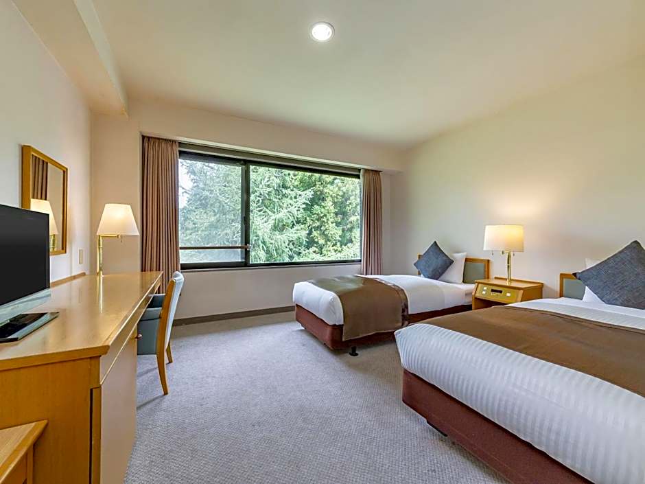 The triple room includes a private bathroom, well-fitted with a bath, a shower, a bidet, a hairdryer and slippers. The air-conditioned triple room features a flat-screen TV, tatami, a wardrobe, a safe deposit box as well as mountain views. The unit has 4 beds.