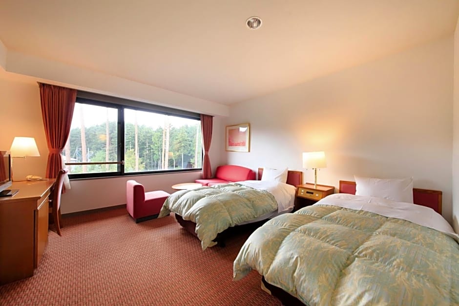 Room options cater to different travelers, including Japanese Style with Fuji View; Deluxe Quadruple with Mountain View; Twin Room options; and more—non-smoking is standard across listed choices.