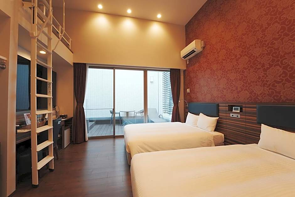 Guests will have a special experience as this twin room provides a private open-air bath. The twin room offers air conditioning, soundproof walls, a terrace with city views as well as a private bathroom featuring a bath. The unit offers 4 beds.