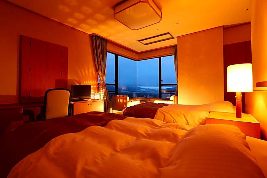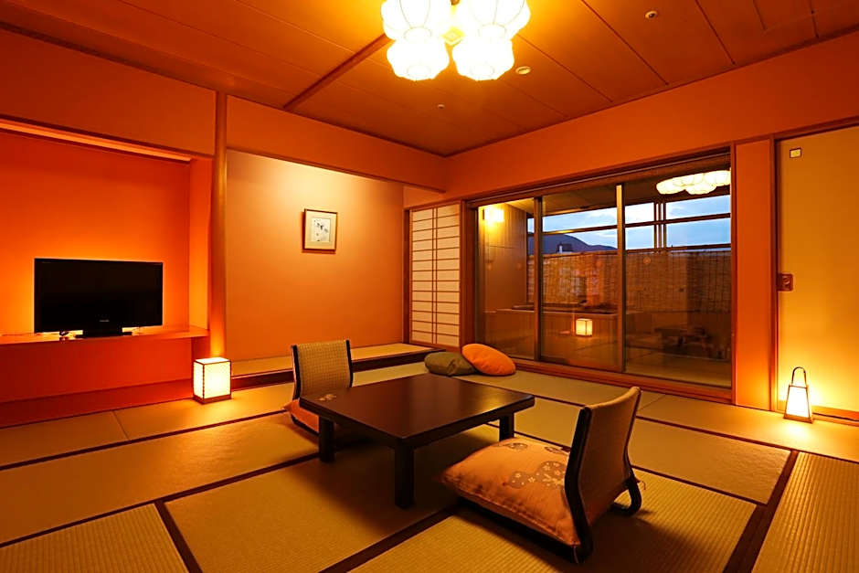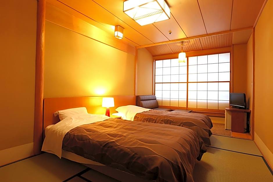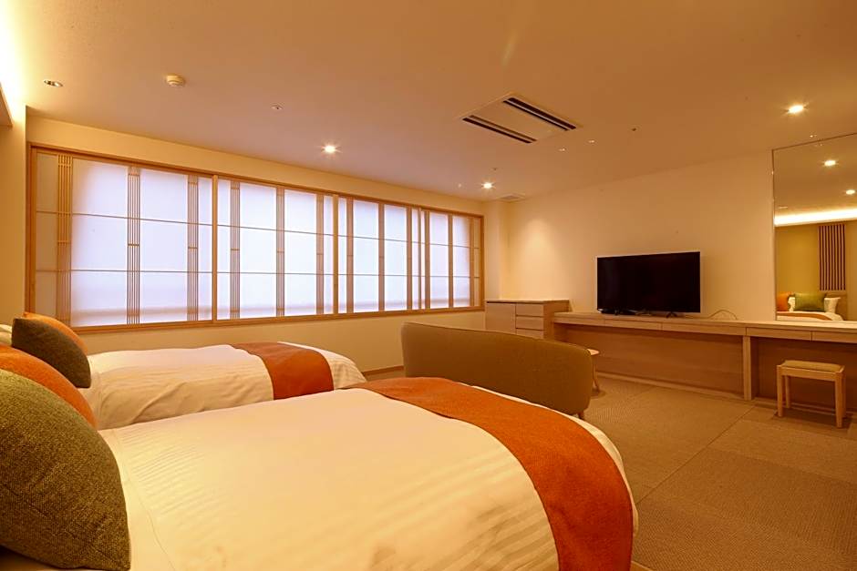 The twin room includes a private bathroom, well-fitted with a bath, a shower, a bidet, a hairdryer and slippers. The twin room features tatami, a tea and coffee maker, a wardrobe, a safe deposit box, as well as a flat-screen TV. The unit has 2 beds.