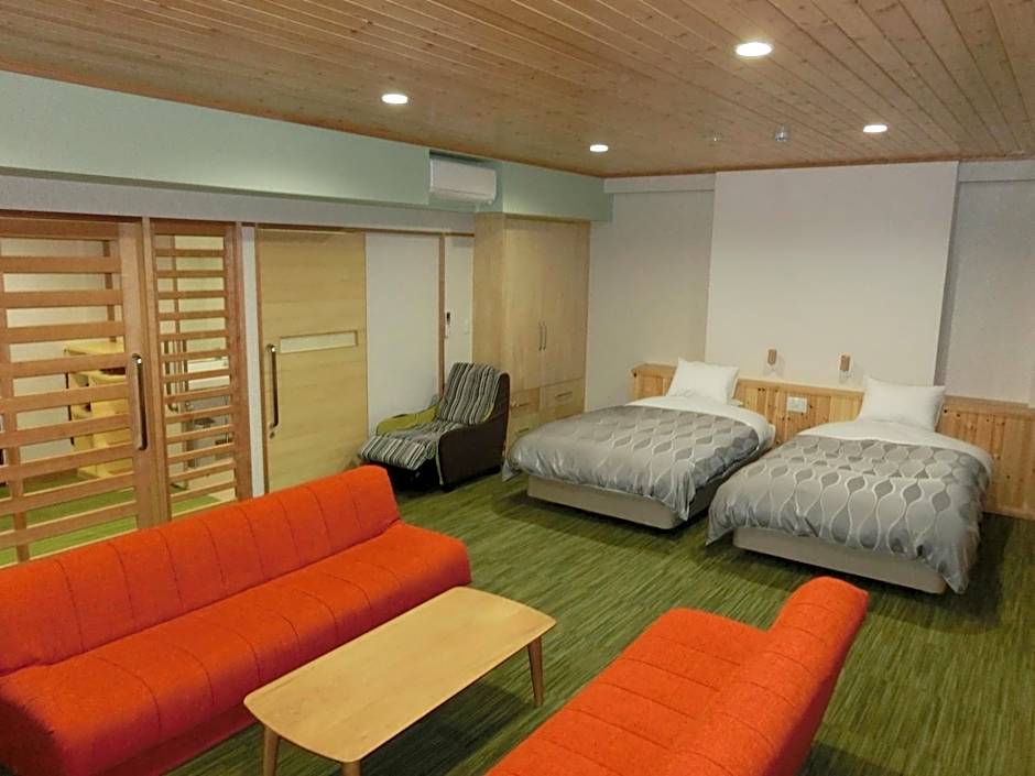 This family room features a seating area and electric kettle. Room features a sink and Japanese-style and modern decor. The private bathroom comes equipped with a bath and shower.