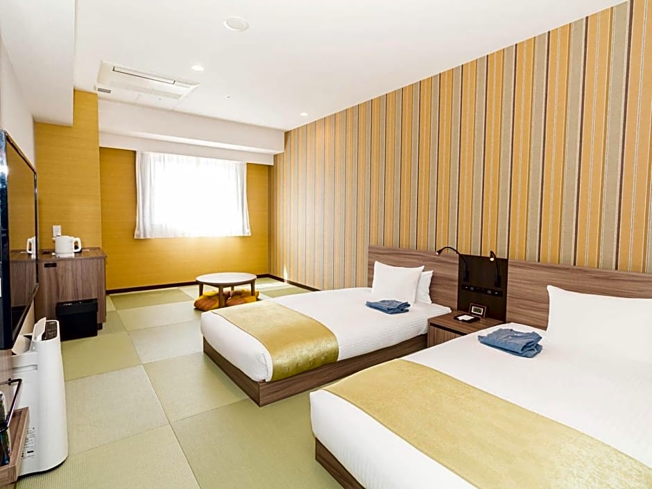 The twin room includes a private bathroom, well-fitted with a bath, a shower, a bidet, a hairdryer and slippers. This twin room is air-conditioned and features a flat-screen TV with satellite channels, tatami, soundproof walls and a wardrobe. The unit offers 2 beds.