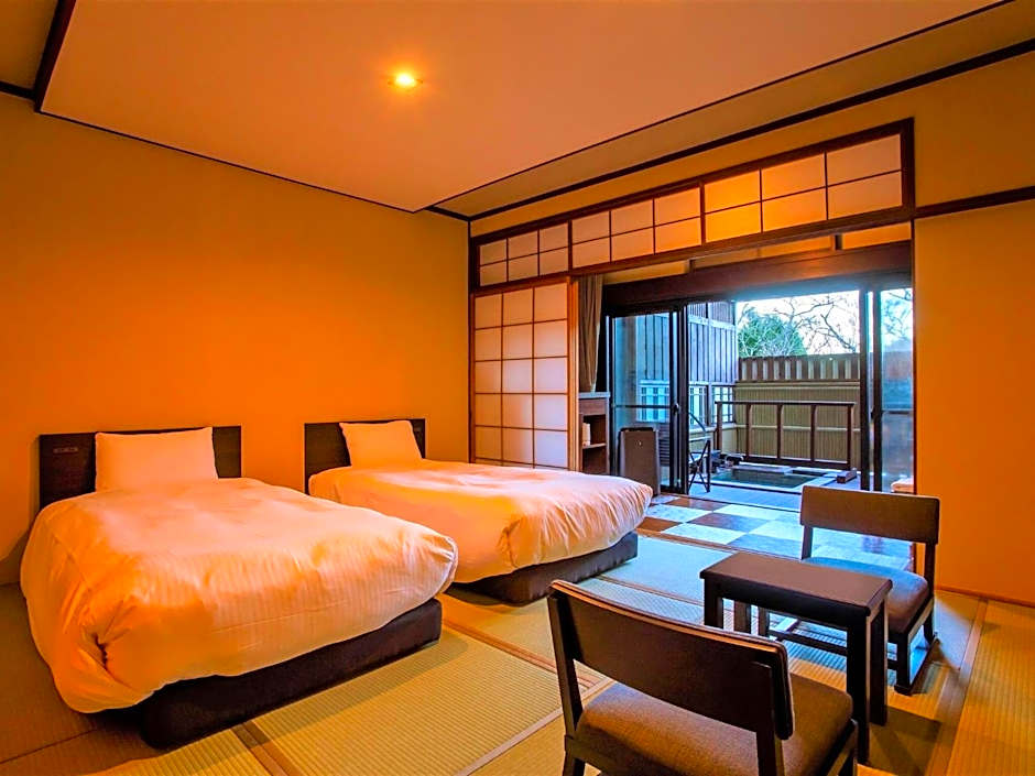 Accommodations offer a diverse range of options, from Japanese Style Annex rooms to larger villas and suites. Examples include Japanese Style Annex, Mountain View; Villa (646 square feet) for a bit more space; and Suite Annex, along with various Annex Building layouts. Twin-bed configurations are available across several room types, providing flexible choices for couples, small families, or groups.