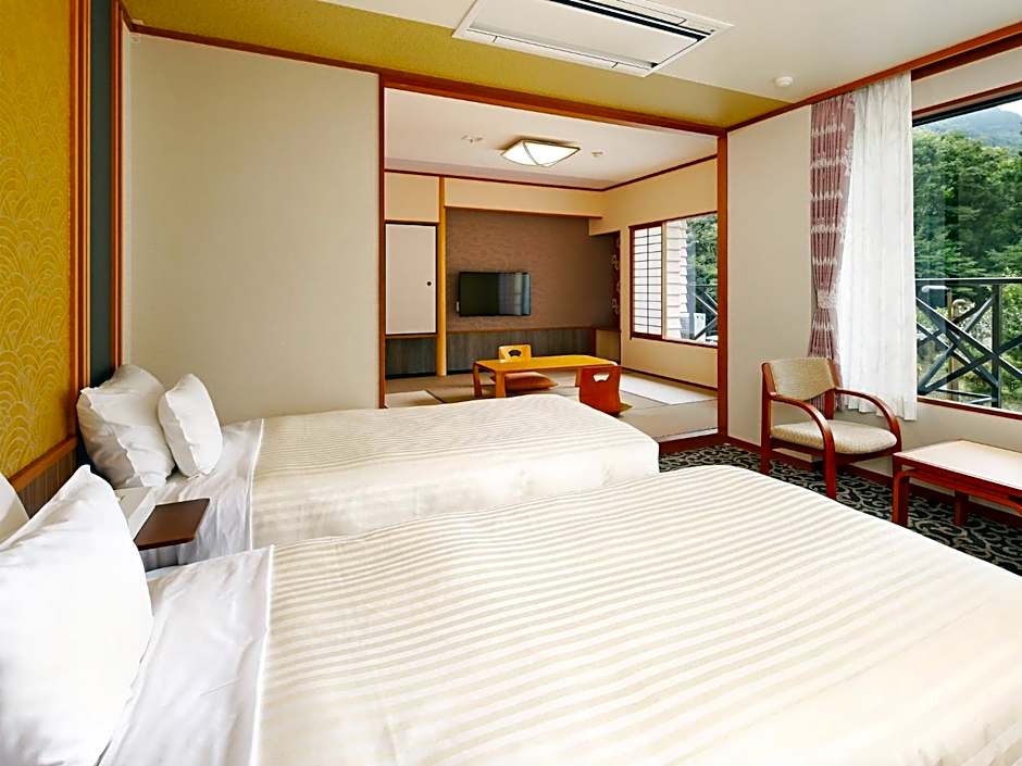 Offering free toiletries, this twin room includes a private bathroom with a shower, a bidet and a hairdryer. The air-conditioned twin room offers a flat-screen TV with satellite channels, tatami, soundproof walls, a safe deposit box as well as mountain views. The unit has 2 beds.