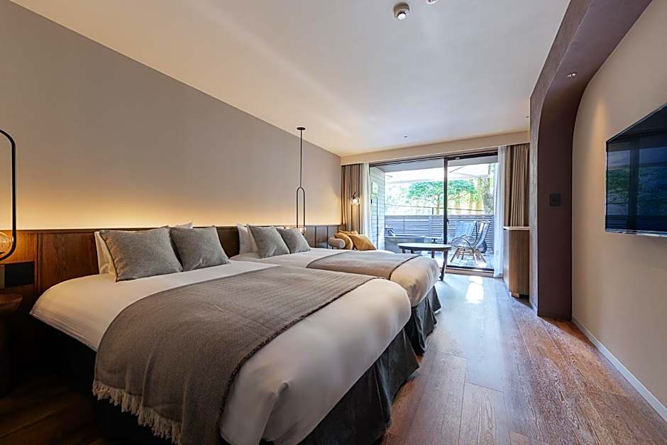 Outside dining and lounging areas invite relaxed moments, with terrace and garden spaces to enjoy Hakone air. An elevator helps with easy movement around the property, and kids’ meals are available for an extra charge, making family trips simpler.