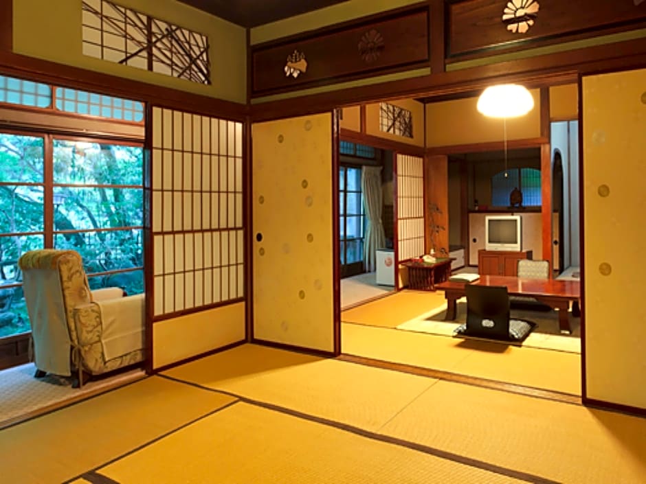 Features tatami (woven-straw) flooring and Japanese futon bedding. Air-conditioned room with garden views, a fridge and a TV. Bathrooms and toilets are shared.