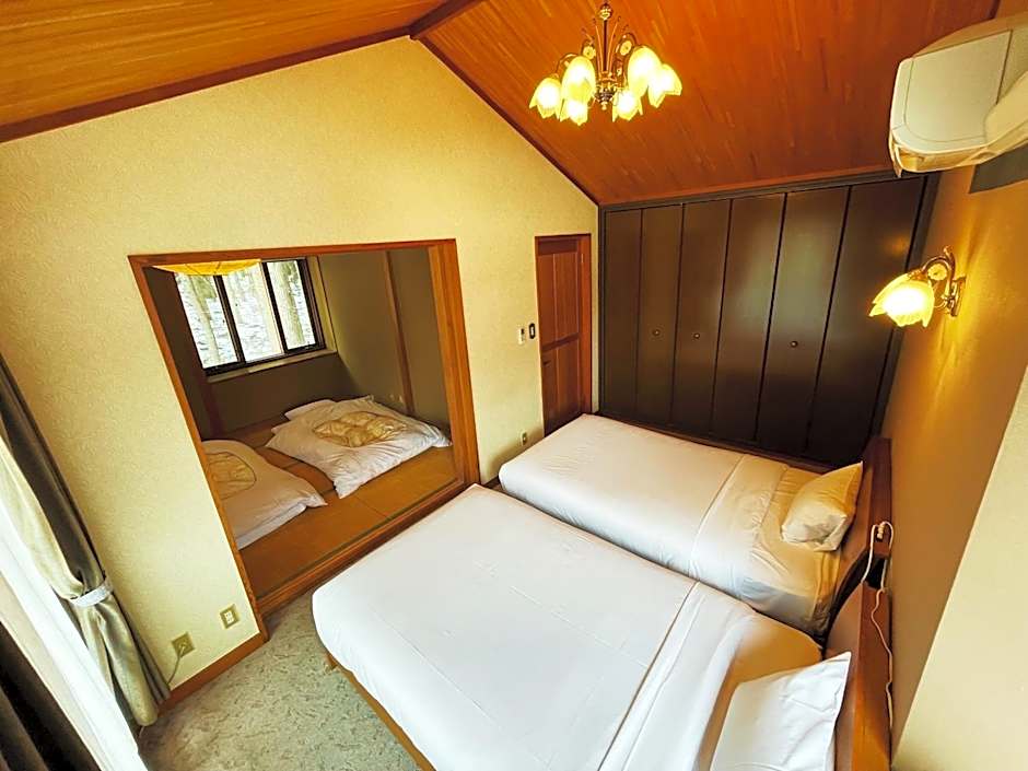This villa's special feature is the fireplace. Featuring a private entrance, this air-conditioned villa is consisted of of 1 living room, 2 separate bedrooms and 1 bathroom with a bath and a shower. The villa features tatami floors, a seating area with a TV, a dining area, an electric kettle, as well as a sofa. The unit offers 2 beds and 2 futons.