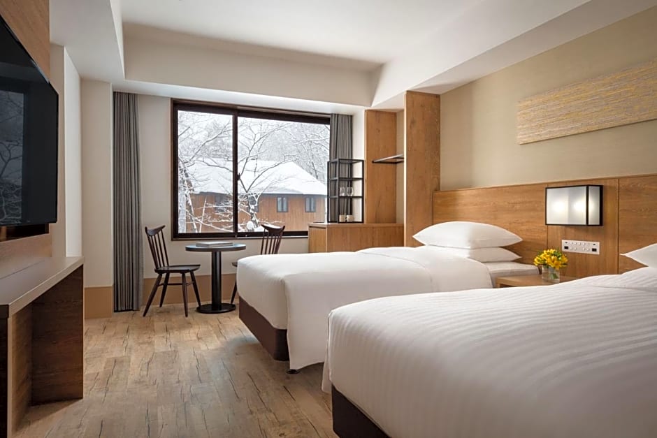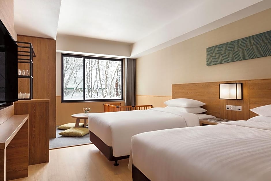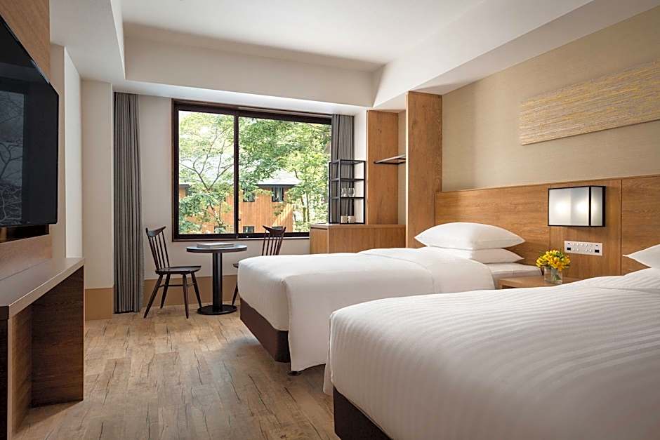 At Courtyard by Marriott Hakuba, the hotel offers a Premium Twin Room with Hot Spring and a Deluxe Twin Room with Tatami Area. The Premium Twin Room has a room size of 355 sqft and can accommodate up to 4 adults and 3 children. It features 2 Twin beds and 2 Futon Mats. The Deluxe Twin Room is larger with a room size of 452 sqft and can accommodate up to 5 adults and 4 children. It also has 2 Twin beds but includes 3 Futon Mats. Smoking is not allowed in either room.