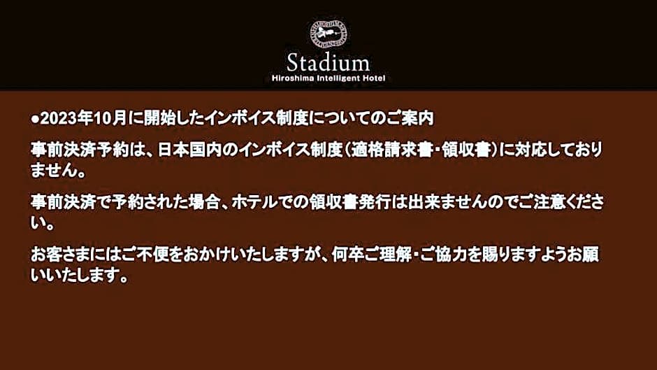 Hiroshima Intelligent Hotel Stadium Mae is a 4-star hotel in Hiroshima, Japan. Located about 1,7 миль from the city center, this property offers a practical base for travelers looking to explore the area.