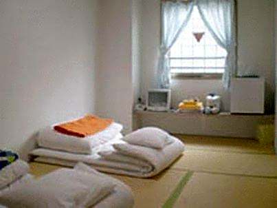 Features tatami (woven-straw) flooring and Japanese futon bedding. Equipped with air-conditioning, a Yukata (Japanese robe) and a TV. Bathrooms and toilets are shared.