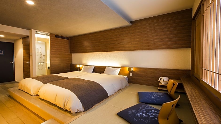 Providing free toiletries, this twin room includes a private bathroom with a shower, a bidet and a hairdryer. The air-conditioned twin room provides a flat-screen TV with satellite channels, tatami, soundproof walls, a seating area as well as mountain views. The unit offers 2 beds.