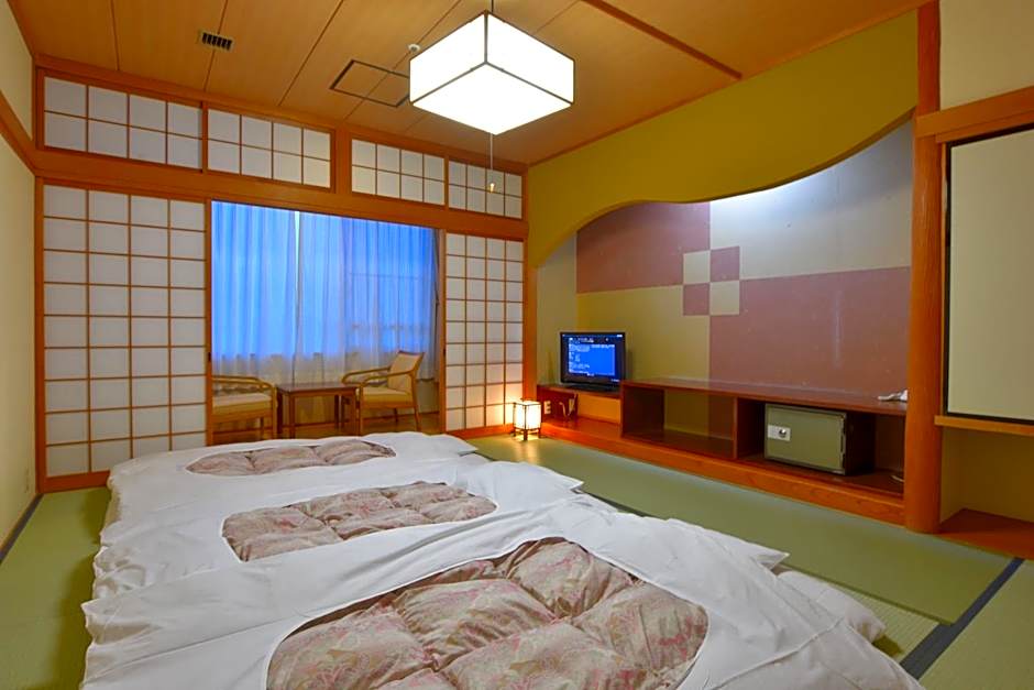 The twin room includes a private bathroom, well-fitted with a bath, a shower, a bidet, a hairdryer and slippers. The twin room offers air conditioning, a safe deposit box, an electric kettle, yukata, as well as a flat-screen TV with cable channels. The unit offers 3 beds.