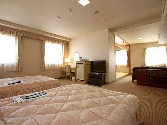 The spacious triple room offers air conditioning, a tea and coffee maker, as well as a private bathroom boasting a bath and a shower. The triple room has carpeted floors, a seating area with a flat-screen TV, a sofa, yukata, as well as heating. The unit has 3 beds.