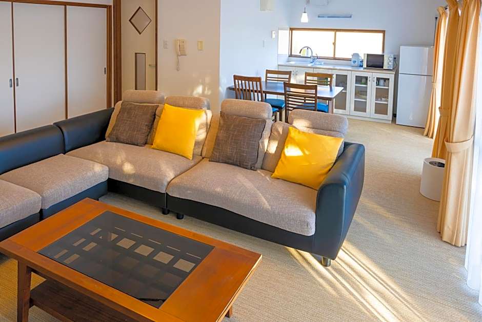Featuring a private entrance, this air-conditioned holiday home is consisted of of 1 living room, 2 separate bedrooms and 1 bathroom with a bath and a shower. Guests can make meals in the kitchen that is fitted with a stovetop, a refrigerator, kitchenware and a microwave. The holiday home features tatami floors, a seating area with a flat-screen TV, a washing machine, soundproof walls as well as garden views. The unit offers 2 beds and 4 futons.