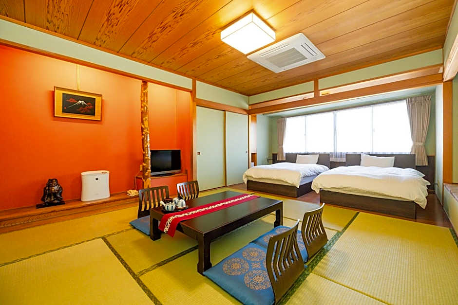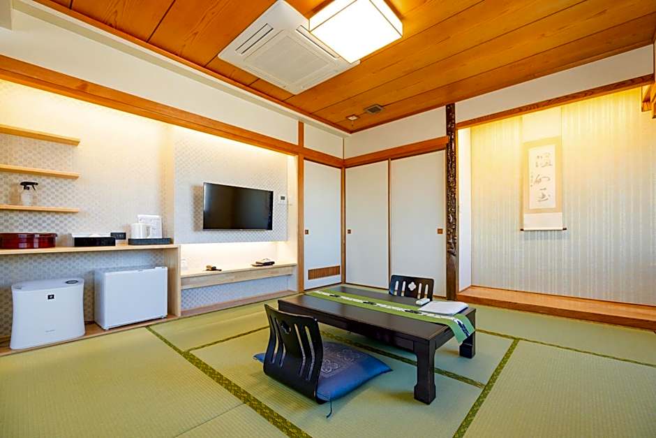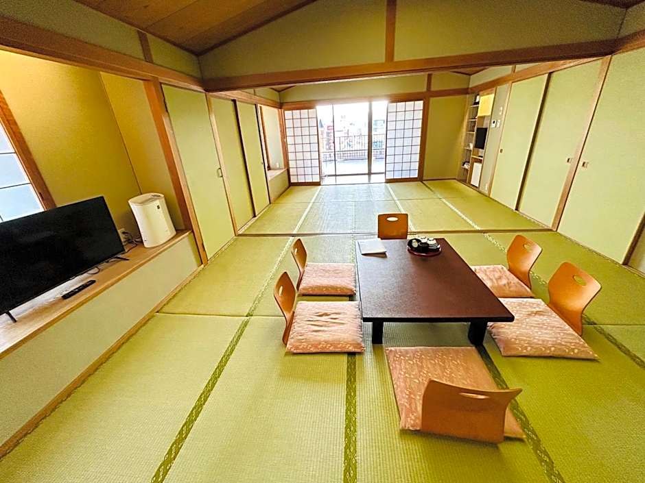 The quadruple room includes a private bathroom, well-fitted with a bath, a shower, a bidet, a hairdryer and slippers. The quadruple room provides air conditioning, tatami, an electric kettle, yukata, as well as a flat-screen TV. The unit offers 5 futons.