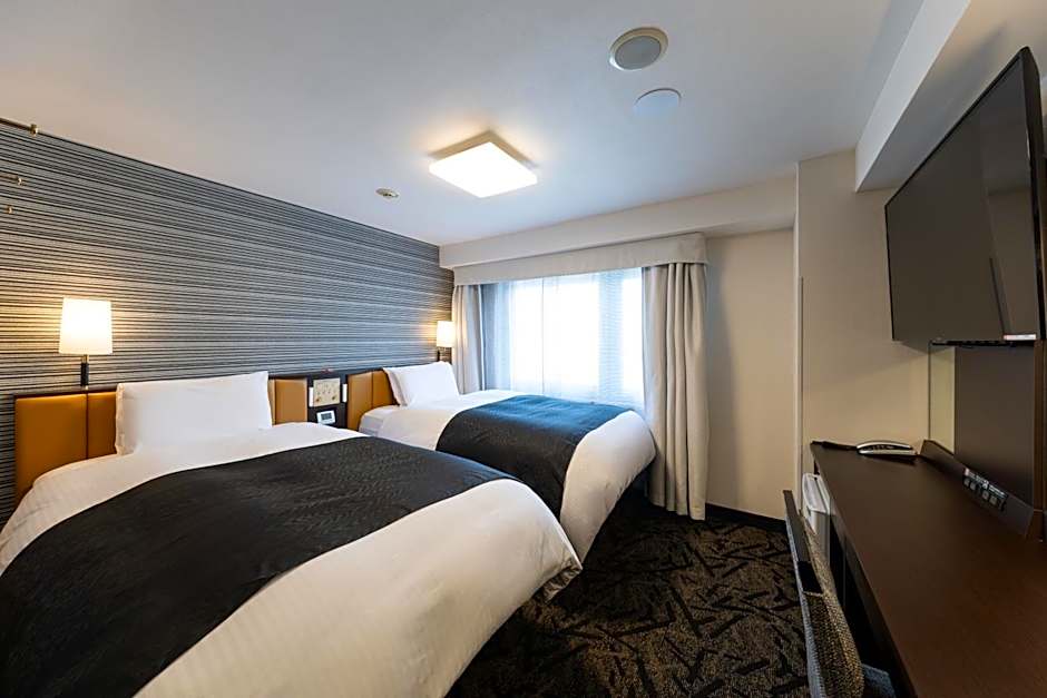 The "nonsmoking" twin room includes a fridge,a 50-inch flat-screen TV and a work desk.The beds are equipped with two beds 43 in wide. The private bathroom comes with a washelt and bath amenities.Bath amenities including a toothbrush set are provided, are made of enviromentally friendly materials.
