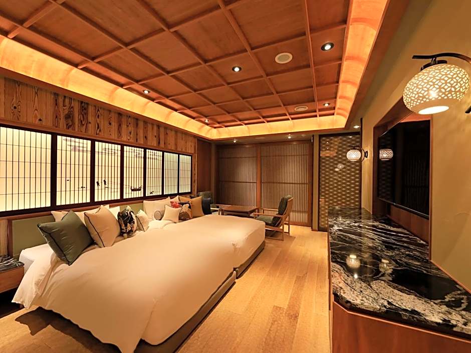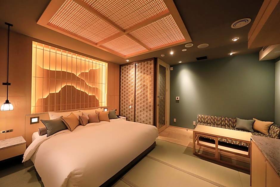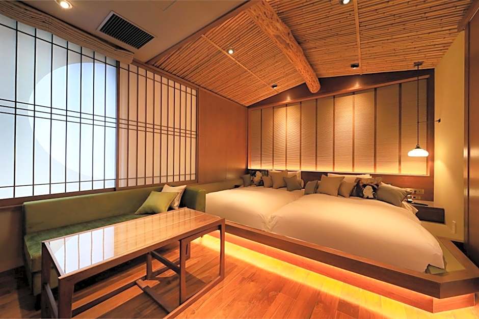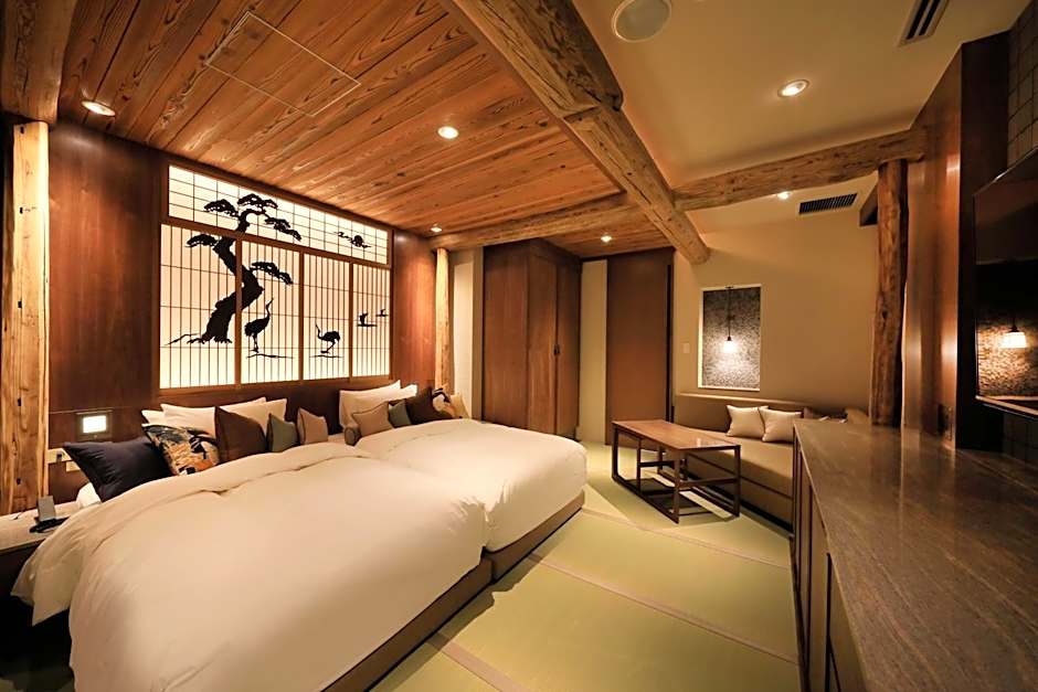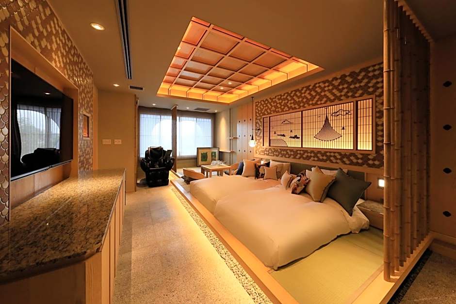 The private open-air bath and sauna are the standout features of this twin room. Featuring free toiletries and bathrobes, this twin room includes a private bathroom with a bath, a shower and a bidet. The spacious twin room features air conditioning, tatami, soundproof walls, a tea and coffee maker and a flat-screen TV with streaming services. The unit has 2 beds.