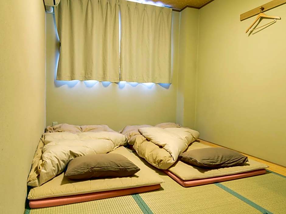 Features tatami (woven-straw) flooring and Japanese futon bedding. Has shared bathrooms and toilets. Soap and shampoo are provided, and towels can be rented.