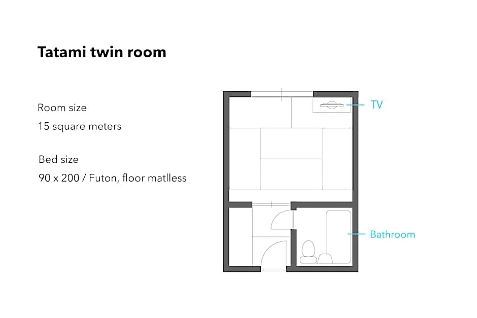 The twin room includes a private bathroom, well-fitted with a bath, a shower, a bidet, a hairdryer and slippers. The twin room has tatami floors, a seating area with a flat-screen TV with satellite channels, air conditioning, an electric kettle, as well as yukata. The unit has 2 futons.