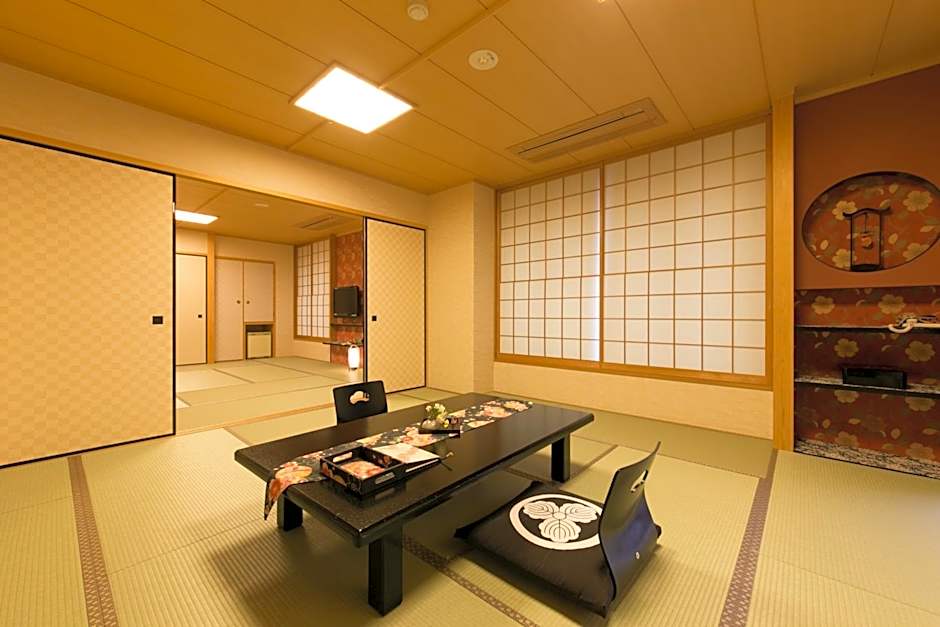 Guests will have a special experience as the suite provides a hot tub. This suite consists of 1 living room, 1 separate bedroom and 1 bathroom with a bath and free toiletries. This suite is air-conditioned and features a seating area with a flat-screen TV, tatami, a wardrobe, a safe deposit box, as well as an electric kettle. The unit offers 8 futons.