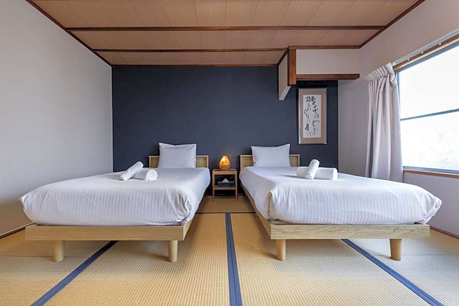 Boasting a private entrance, this air-conditioned holiday home includes 1 living room, 2 separate bedrooms and 1 bathroom with a bath and a shower. Meals can be prepared in the kitchen, which is fitted with a stovetop, a refrigerator, kitchenware and a microwave. The holiday home has tatami floors, a seating area with a flat-screen TV, a washing machine, a tea and coffee maker as well as garden views. The unit has 4 beds.