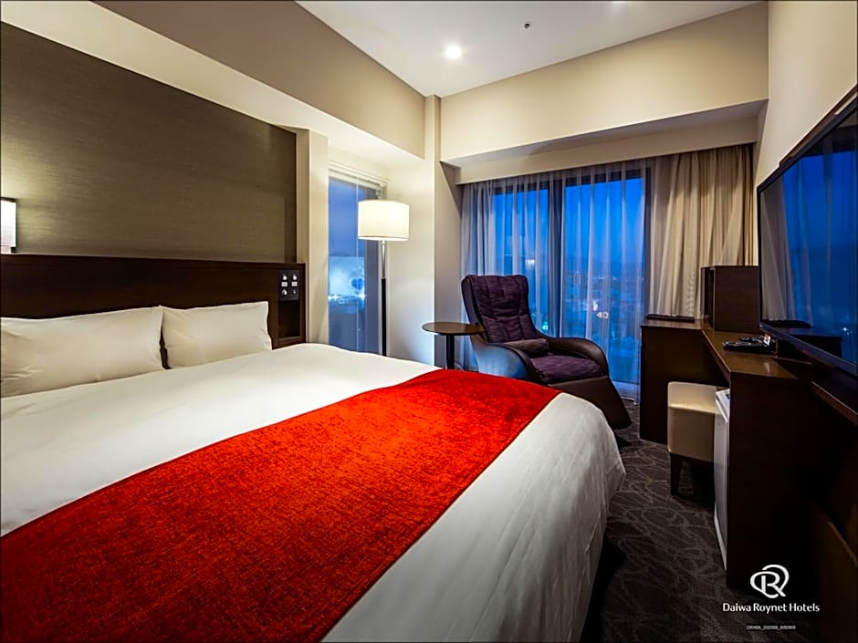 The Daiwa Roynet Hotel Matsuyama offers a variety of room types including economy twin rooms, superior double rooms with massage chairs, standard double rooms, and economy triple rooms. The rooms are available in both smoking and non-smoking options. The room sizes range from 226 sqft to 301 sqft and can accommodate 2 adults with 1 or 2 children, with the triple room accommodating 3 adults and 2 children. The beds in the rooms include either twin beds or a queen size bed.