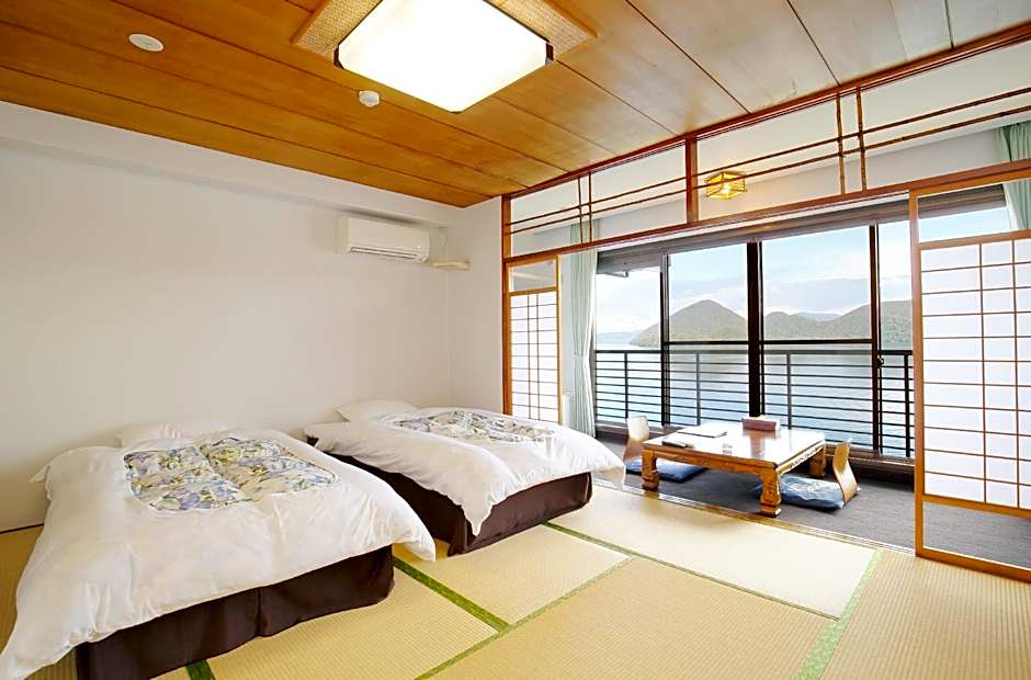 The spacious quadruple room features air conditioning, tatami, as well as a private bathroom boasting a bath and a shower. The quadruple room provides an electric kettle, heating and lake views. The unit has 2 beds.