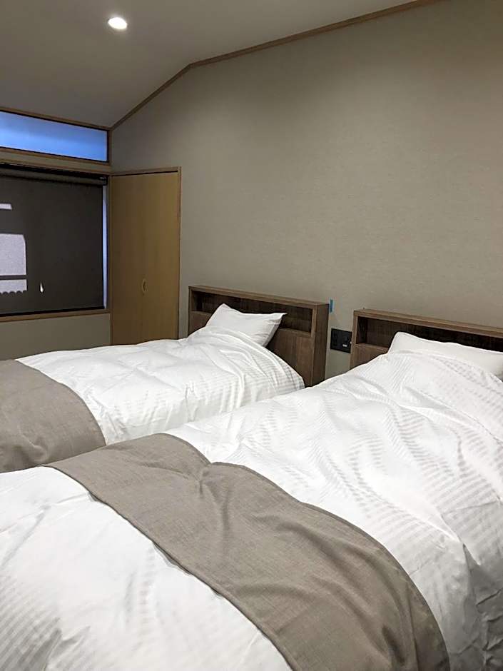 The twin room provides air conditioning, tatami, as well as a private bathroom featuring a shower and a bidet. The twin room features a wardrobe, an electric kettle, yukata, heating, as well as a flat-screen TV. The unit offers 3 beds.