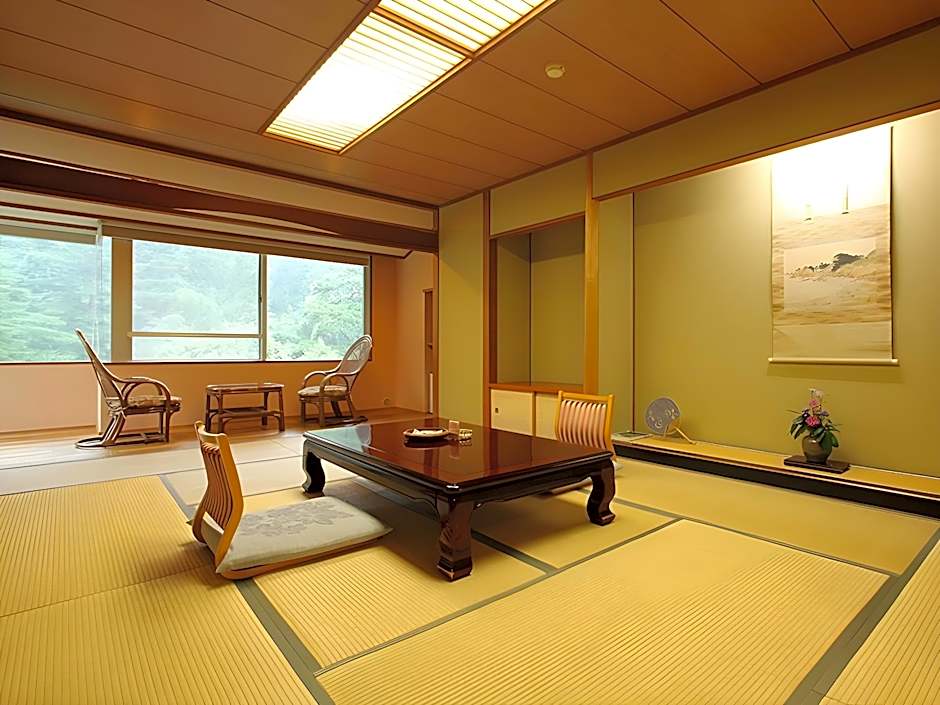 Features tatami (woven-straw) flooring and Japanese futon bedding. This room has a garden view and a seating area. A refrigerator, an electric kettle, and a TV are included.