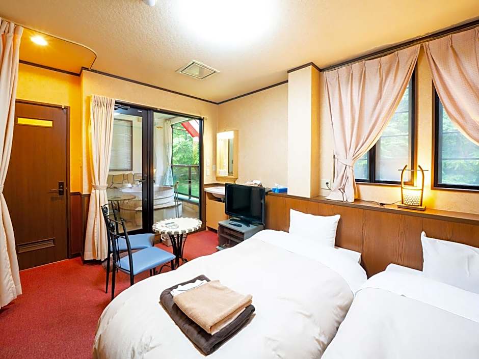 The private open-air bath is the standout feature of this triple room. Featuring free toiletries and bathrobes, this triple room includes a shared bathroom with a bath, a shower and a hairdryer. Boasting a terrace, this triple room also features air conditioning, soundproof walls and a flat-screen TV with satellite channels. The unit has 3 beds.
