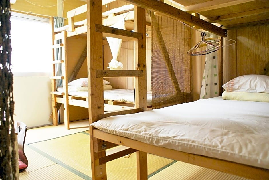 Price includes 1 bunk in an air-conditioned room with multiple bunk beds. Has a tatami (woven-straw) floor. Showers and toilets are shared. Men only.