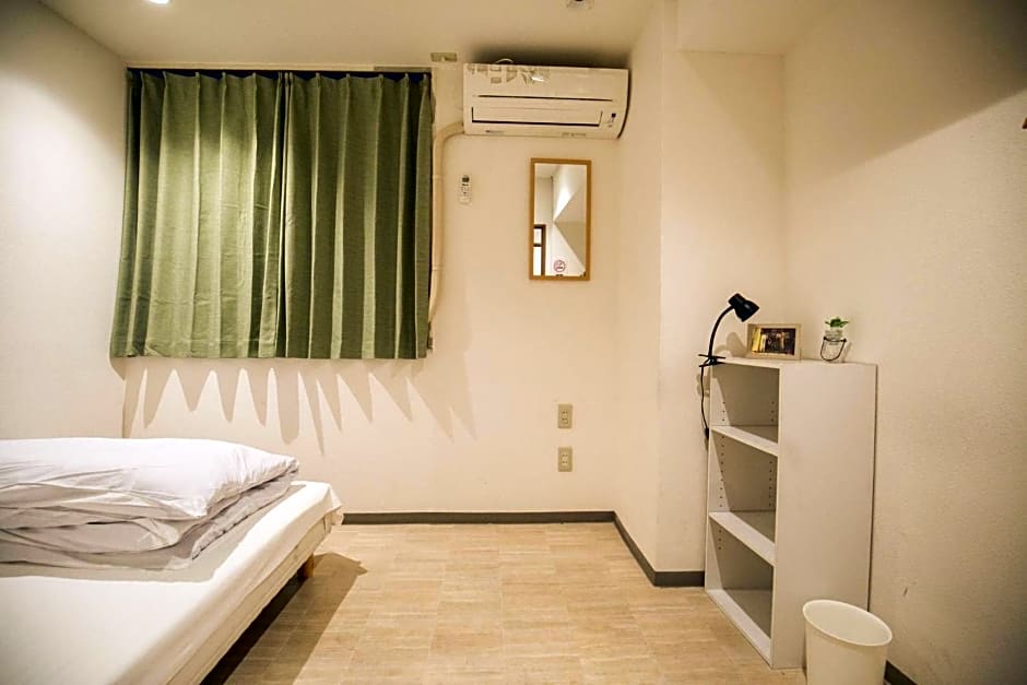 The double room provides air conditioning, tatami, as well as a shared bathroom featuring slippers. Rooms on the upper floors are reachable by elevator. The unit offers 1 bed.