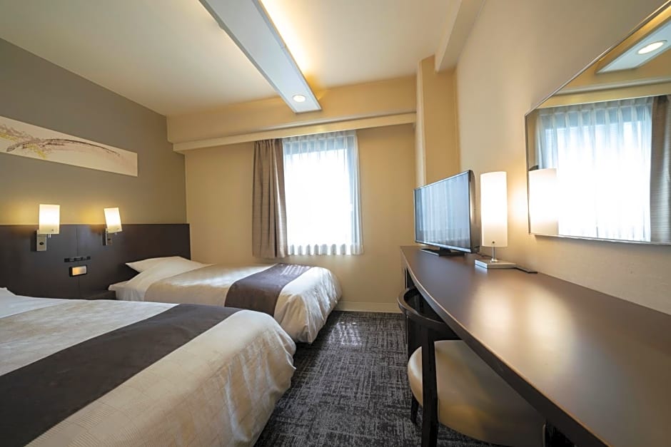 Hotel Binario Umeda offers a variety of rooms, including standard twin rooms, economy single rooms, economy twin rooms, and double rooms with small double beds. Some rooms allow smoking while others are non-smoking. The room sizes range from 118 sqft to 237 sqft. The occupancy options range from single occupancy to triple occupancy, accommodating both adults and children. The beds in the rooms are twin beds, with some rooms having an extra bed option.