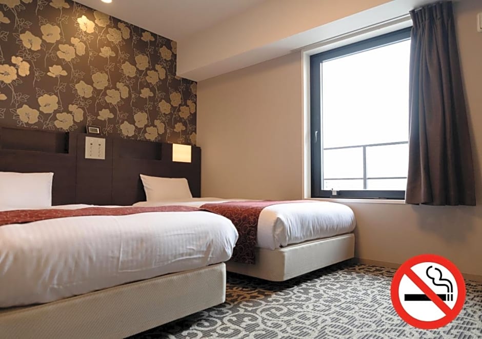 The hotel offers Small Double Rooms and Double Rooms, both of which have a room size of 140 sqft. The Small Double Rooms do not allow smoking and accommodate 2 adults with no children, while the Double Rooms have an option for smoking and can accommodate 2 adults with 1 child. The hotel also offers Twin Rooms with a room size of 205 sqft, both with and without smoking options, and can accommodate 2 adults with 1 child. The Twin Rooms have 2 Twin beds.