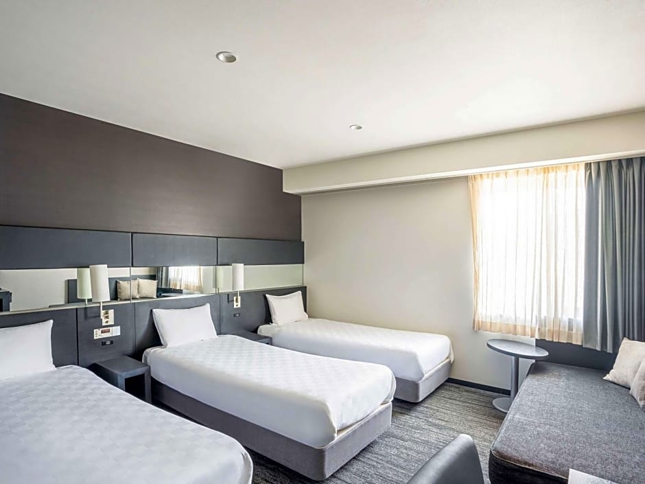 The available rooms at ibis Styles Osaka Namba include Superior Rooms with 4 single beds, Superior Rooms with 2 single beds and a sofa bed, Standard Plus Queen Rooms, Deluxe Quadruple Rooms, Standard Twin Rooms, Standard Queen Rooms, and Superior Rooms with 3 single beds. The rooms range in size from 161 sqft to 484 sqft. All rooms are non-smoking and have different bed configurations to accommodate 2-4 adults and 1 child.