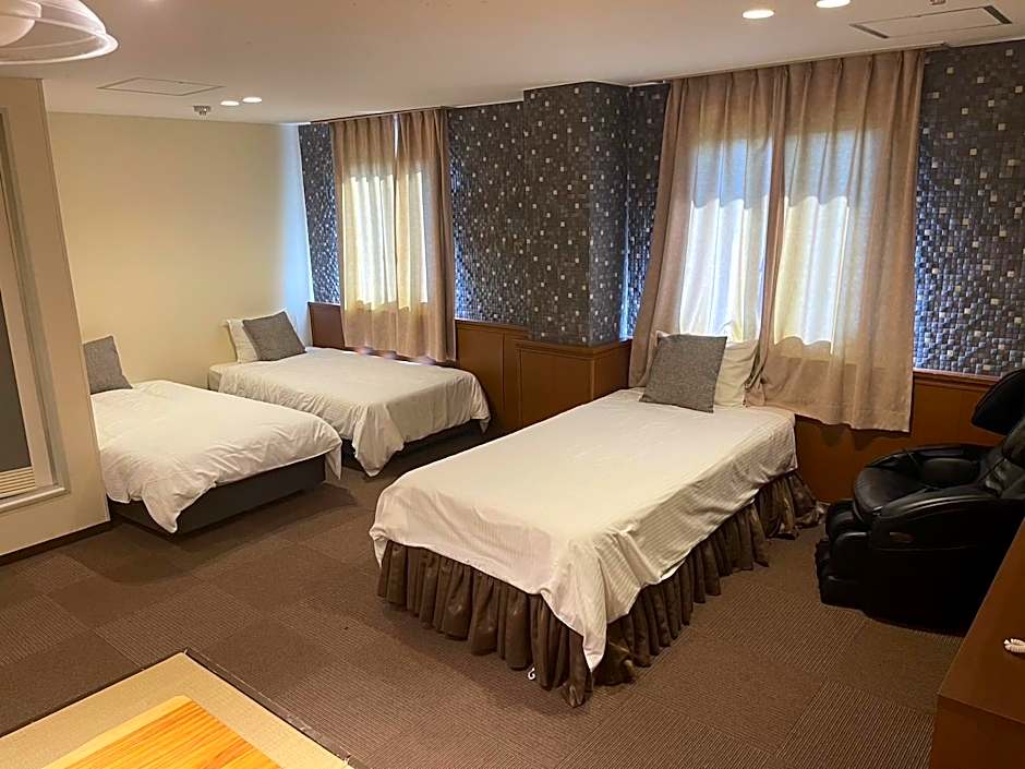 The triple room features air conditioning and tatami, as well as a private bathroom boasting slippers. The triple room offers an electric kettle, yukata, heating, as well as a flat-screen TV. The unit has 3 beds.
