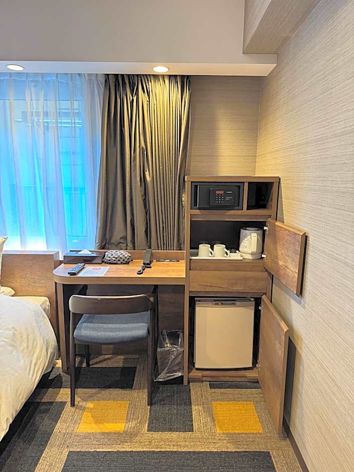 The twin room includes a private bathroom, well-fitted with a bath, a shower, a bidet, a hairdryer and slippers. The twin room offers air conditioning, tatami, soundproof walls, a safe deposit box, as well as a flat-screen TV. The unit has 2 beds.