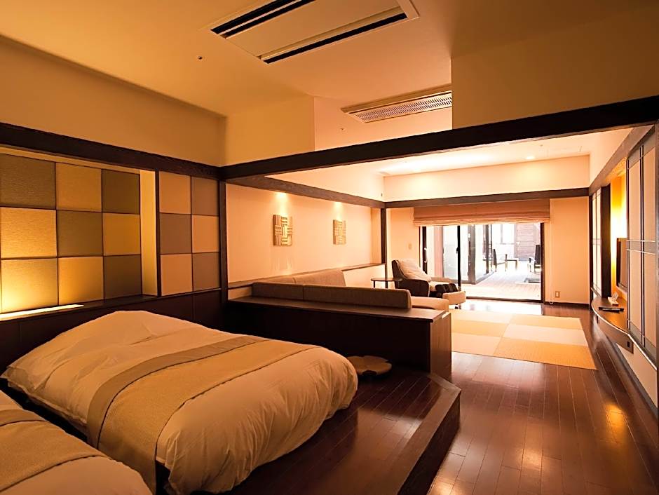This very spacious suite features a beautiful lake view from large windows and a private open-air hot spring bath.