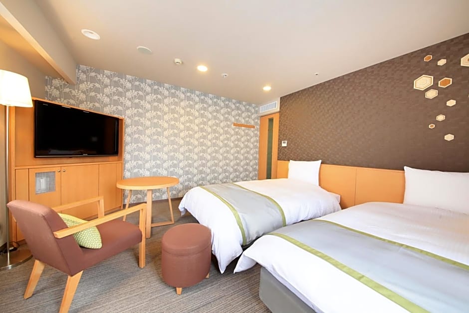 Richmond Hotel Sapporo Ekimae offers Double Rooms and Twin Rooms in smoking and non-smoking options. The Double Rooms accommodate 2 adults and 1 child, featuring a double bed, while the Twin Rooms accommodate 2 adults and 2 children with two twin beds. Room sizes range from 194 sqft for Double Rooms to 291 sqft for Twin Rooms.