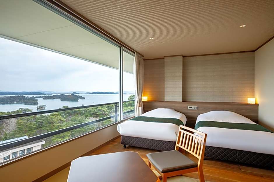 Hotel Matsushima Taikanso offers a variety of room types including Western-style rooms, Japanese-style rooms, and suites. Occupancy varies from single rooms to quad rooms. Bed sizes range from single to king-size beds, with room sizes accommodating 1 to 4 guests. Smoking is allowed in designated rooms.