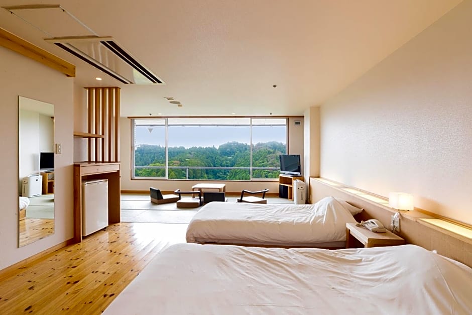 Offering free toiletries, this family room includes a private bathroom with a bath, a shower and a hairdryer. The spacious air-conditioned family room offers a flat-screen TV, tatami, a tea and coffee maker, a safe deposit box as well as sea views. The unit offers 2 beds.