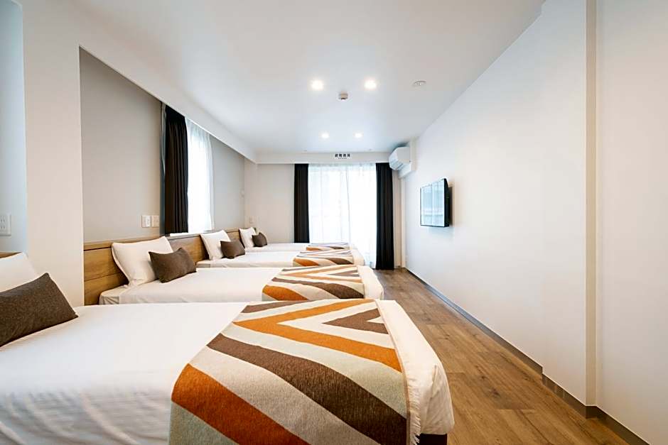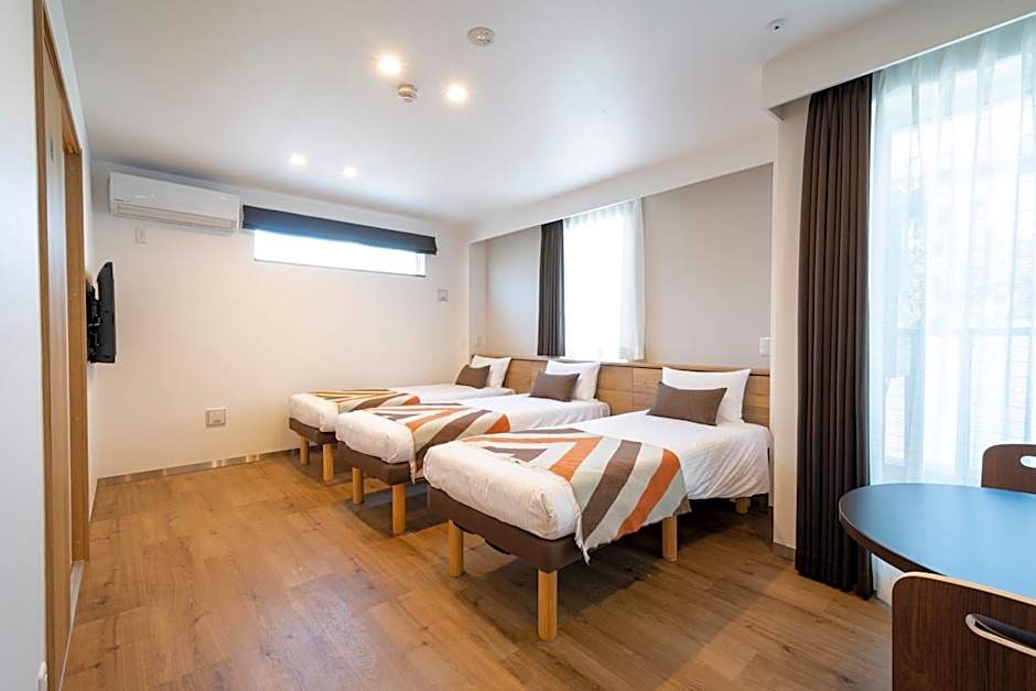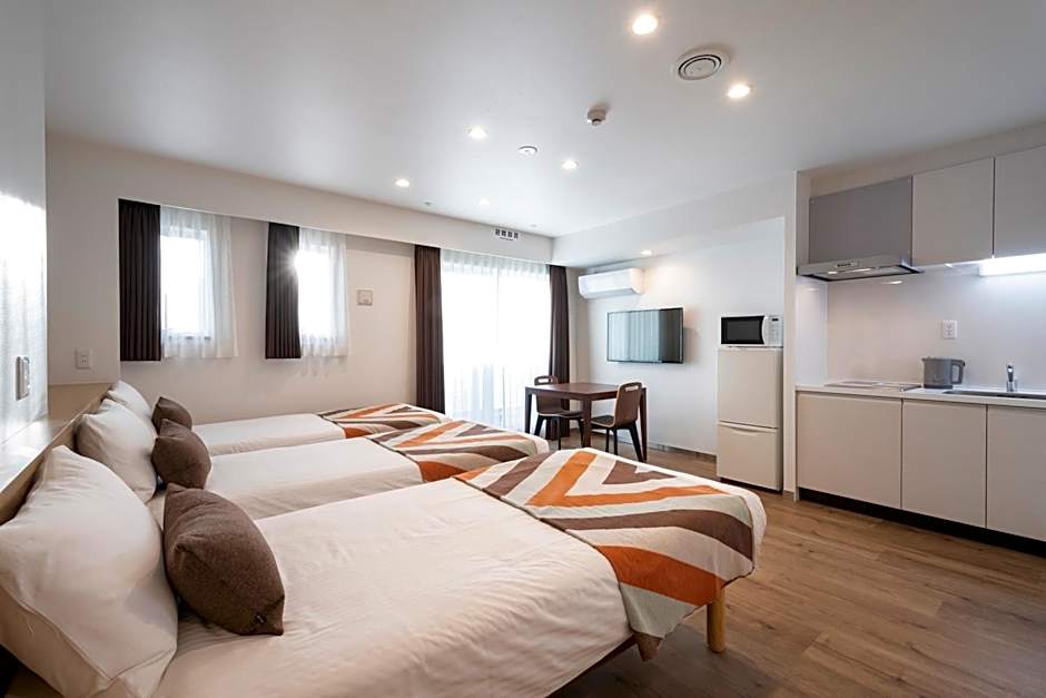 Guests can make meals in the kitchenette that is equipped with a refrigerator, kitchenware, a microwave and an electric kettle. The quadruple room provides air conditioning, a washing machine, a balcony with city views as well as a private bathroom featuring a bath. The unit offers 4 beds.