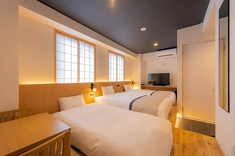 The twin room provides air conditioning, tatami, as well as a private bathroom featuring a bath and a shower. The twin room features soundproof walls, an electric kettle, pajamas and a flat-screen TV. The unit offers 2 beds.