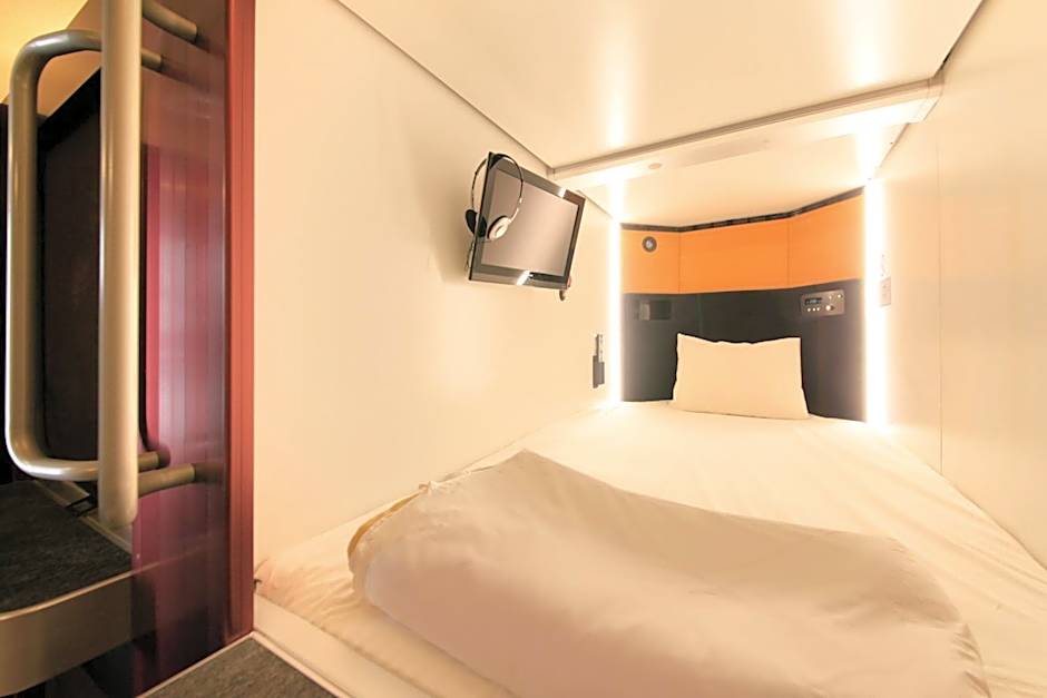 Sleeping options run the gamut from capsules to cabins and dormitories, with male-only configurations appearing across several room types. Examples include Capsule, 1 Twin, Male Only (22 sqft) and Standard Capsule, Male Only (33 sqft) for solo travelers who want privacy, plus larger dormitory and cabin layouts for groups.