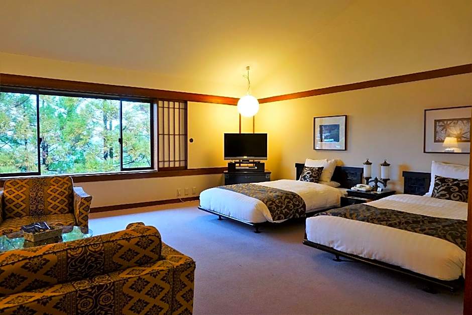 Experience the spacious and stylish Superior Room with a mountain and garden view, complete with air purifiers, air conditioning, and a private bathroom with bathtub. Perfect for up to 3 adults, non-smoking, and accessible by elevator.