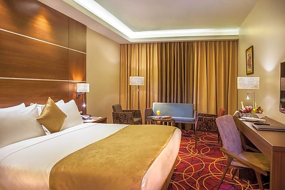 A great Space with King Size bed fully equipped suitable for single or double occupancy for a couple, a separate living room with an extra sofa bed, a working desk. The elegant bathroom offers a fixed rain shower and a shower handle, a separation glass door, gentle toiletries, fresh towels and a well lit counter with a huge mirror. Combining luxury and comfort, the Suite is furnished with ultra modern European furniture. Guests also enjoy premier modern amenities such as high speed Internet, flat screen TV, hairdryer and mini fridge