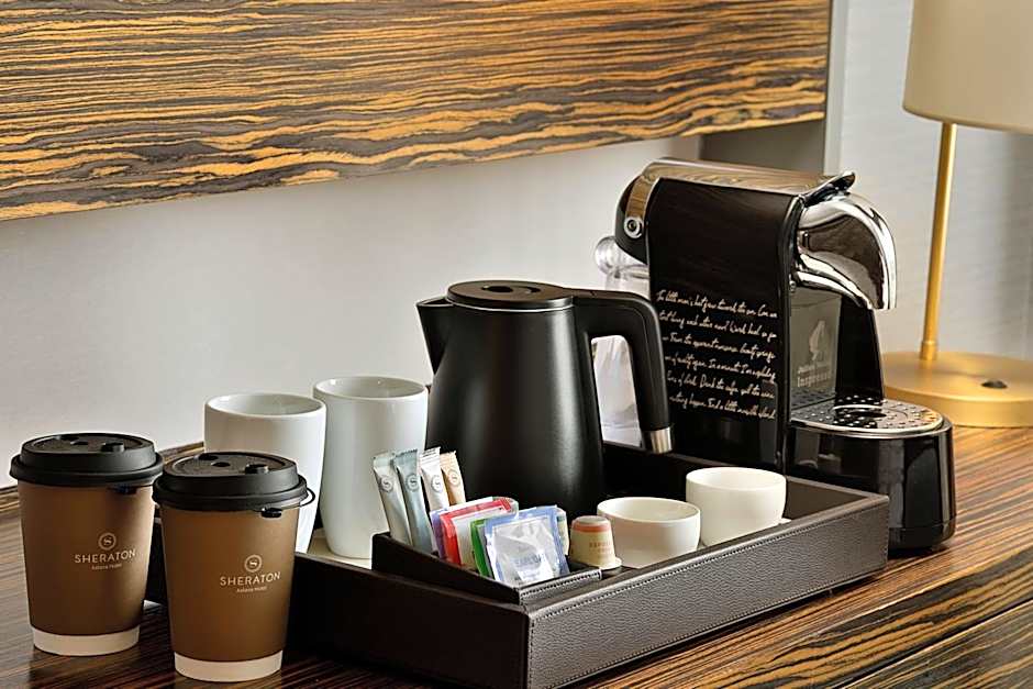 The Sheraton Astana Hotel offers two on-site restaurants: Emiliya, serving international cuisine, and SALTER'S, specializing in European dishes. These dining options are available at the hotel for guests' convenience.