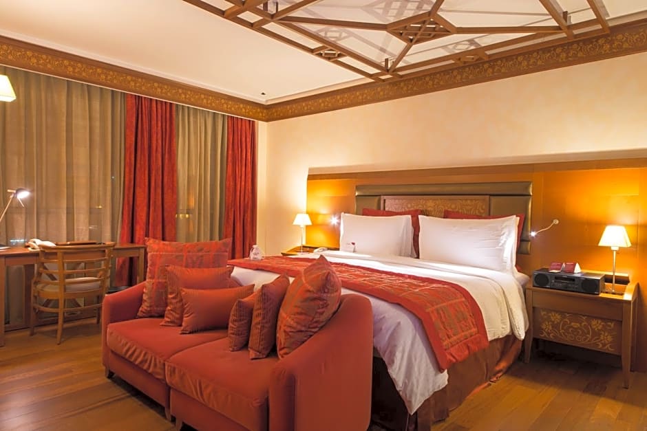 The hotel offers a variety of room types including Standard King Rooms, King Rooms with Pool View, One-Bedroom King Suites with Pool View, Superior King Rooms, Standard Double Rooms, Superior Twin Rooms, One-Bedroom King Suites with a Jetted Tub, Ambassador King Suites, and Junior King Suites. All rooms are non-smoking and have a room size of 388 sqft, except for the One-Bedroom King Suite with Jetted Tub which is 495 sqft, and the Ambassador King Suite which is 570 sqft. The rooms can accommodate between 2-4 adults and 1-3 children and have different bed configurations.